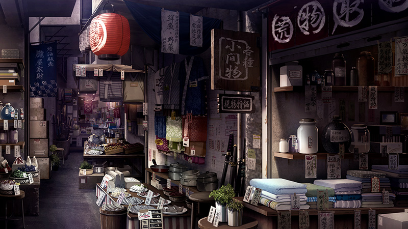 非合法の物品や、共和国軍からの払い下げ品を取り引きする店が密集する地域。爆撃により瓦礫と化した武人町から掘り出された呪装刀が店先に並ぶこともある。扱われている商品の性格上、日没後に活気が出ることから《夜鴉町》の名が付いた。入り組んだ路地はさながら迷路であり、脛に傷ある者が身を隠すには最適の場所でもある。
